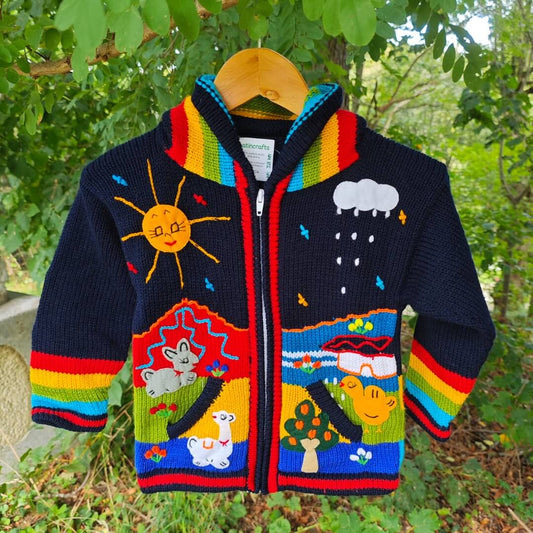 ALANA bunte doppelseitig bestickte Kinderstrickjacke aus Alpakawolle